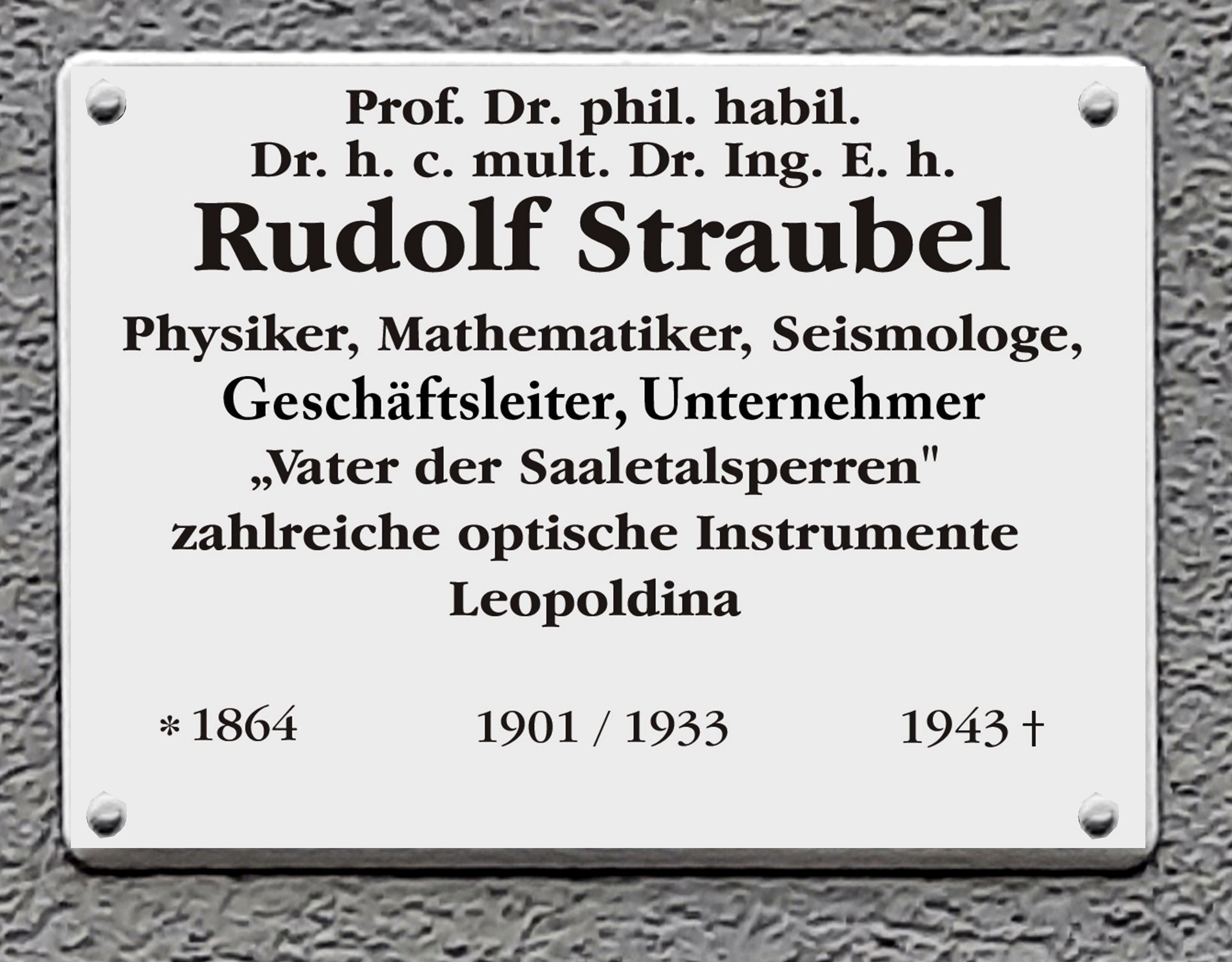 - Herr Albrecht Loth hat namens des Kreisverbandes Gotha der Partei Bündnis 90/Die Grünen am 22. Oktober 2017 in einer Pressemitteilung auf das Wirken Rudolf Straubels aufmerksam gemacht. Dort heißt es: - Vortrag im Rahmen der "Langen Nacht der Wissenschaften" in Jena: "Zur Geschichte der Astronomie in Schillers Garten". Im Mittelpunkt des Vortrags am 24. November 2017 um 20 Uhr 30 in der Pergola des Schillerhauses stehen die Gründung der Jenaer Sternwarte von 1813 durch Herzog Carl August von Sachsen-Weimar-Eisenach unter Mitwirkung Goethes, ihre Erneuerung durch Ernst Abbe 1877 sowie dessen Nachfolger Otto Knopf als Sternwartendirektor und Rudolf Straubel als Leiter der seismischen Station an der Sternwarte von 1897 bis 1919, als Professor der Physik seit 1897 und als Geschäftsführer des Zeiss- und des Schottwerks von 1903 bzw. 1907 bis 1933.