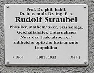 - Die Deutsche Wasserhistorische Gesellschaft beabsichtigt, in einem Sonderband ihrer Schriftenreihe »Bedeutende Ingenieure und Kunstmeister und ihre wasserbaulichen Leistungen in Mitteldeutschland« zu würdigen. Als Beitrag ist in Vorbereitung: - Am 6. Februar 2023 ist in einem öffentlichen Festakt dem Hörsaal 2 im Abbeanum der Name "Rudolf-Straubel-Hörsaal" verliehen worden. Zu der Veranstaltung ist durch eine Pressemitteilung der Universität eingeladen worden.
